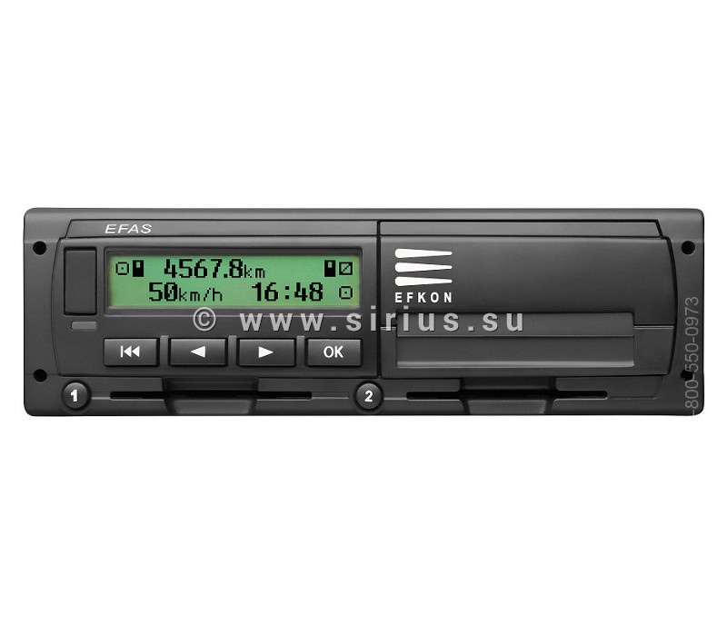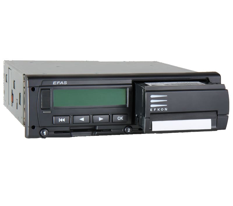 Тахограф Efas-4 — это удобное в эксплуатации цифровое контрольное устройство, выполненное в полном соответствии с европейским соглашением о работе экипажей транспортных средств, производящих международные автомобильные перевозки. Цифровой тахограф записывает информацию относительно времени, которое водитель и сменный водитель транспортного средства тратят на вождение, работу, отдых, а также параметры транспортного средства, такие, как расстояние, скорость транспортного средства, события и ошибки.